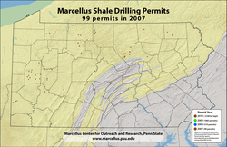 Based on data from the Pennsylvania Department of Environmental Protection (DEP), the animations show both the number of drilling permits issued for the Marcellus Shale and the number of wells drilled by year from 2007 through August 2010. Whereas permits were issued prior to 2007, information on those permits did not include latitude and longitude.