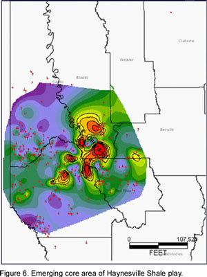What projections seem reasonable for the Marcellus Shale based on experience with other plays? We should expect that the play will contract to a much smaller core area, or perhaps a few areas, instead of the currently advertised expectations for the region as a whole. It is also likely that identification of core areas will be more difficult because of the large geographic extent of the play. This should result in a higher level of capital destruction in drilling and leasing than in other shale plays.