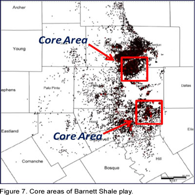 Because of the relative maturity of the Barnett Shale, we can learn from evaluating the northern core area in Wise, Denton and Tarrant counties, Texas (Figure 8).