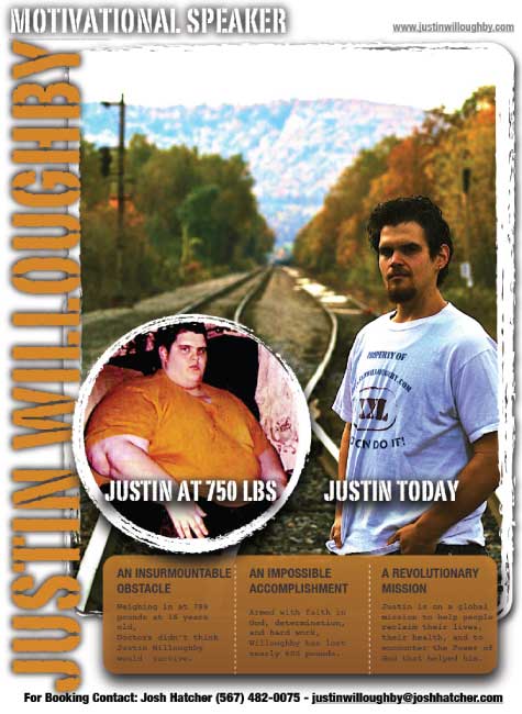 Justin Willoughby ( http://www.justinwilloughby.com ) faced the battle against obesity in his own life. He weighed in at 799 pounds at age 16.